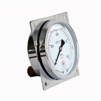 轴向前边耐震压力表是耐震压力表系列中常用的一种,安装时利用耐震压力表自带的安装边(盘)固定在设备面板上,方便操作人员随时观察压力变化。轴向前边耐震压力表表壳为全密闭型结构,内部填充阻尼液(一般为甘油或者硅油)并加装缓冲机构,减轻环境剧烈振动及介质脉冲对仪表示值的影响,耐震型压力表指示稳定清晰。广泛应用于液压机械、石油、化工、冶金、矿山机械、电力设备等部门,测量对铜和铜合金无腐蚀性介质的压力。使用寿命长,是普通压力表的替代产品,防护等级IP65。